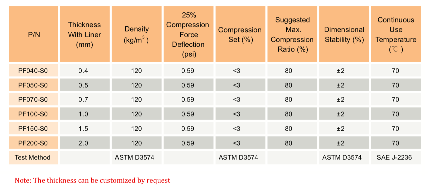 TM PF-S0 系列是一種超柔軟、低密度、緩慢回彈的泡棉,用于電子設(shè)備中的緩沖、保護(hù)性密封和長期間隙填充??梢赃_(dá)到80%的壓縮比。S0系列泡棉具有非常低的壓縮永久變形率,還擁有高密封性能,以及在不平整表面上也有出色的沖擊吸收能力。" />