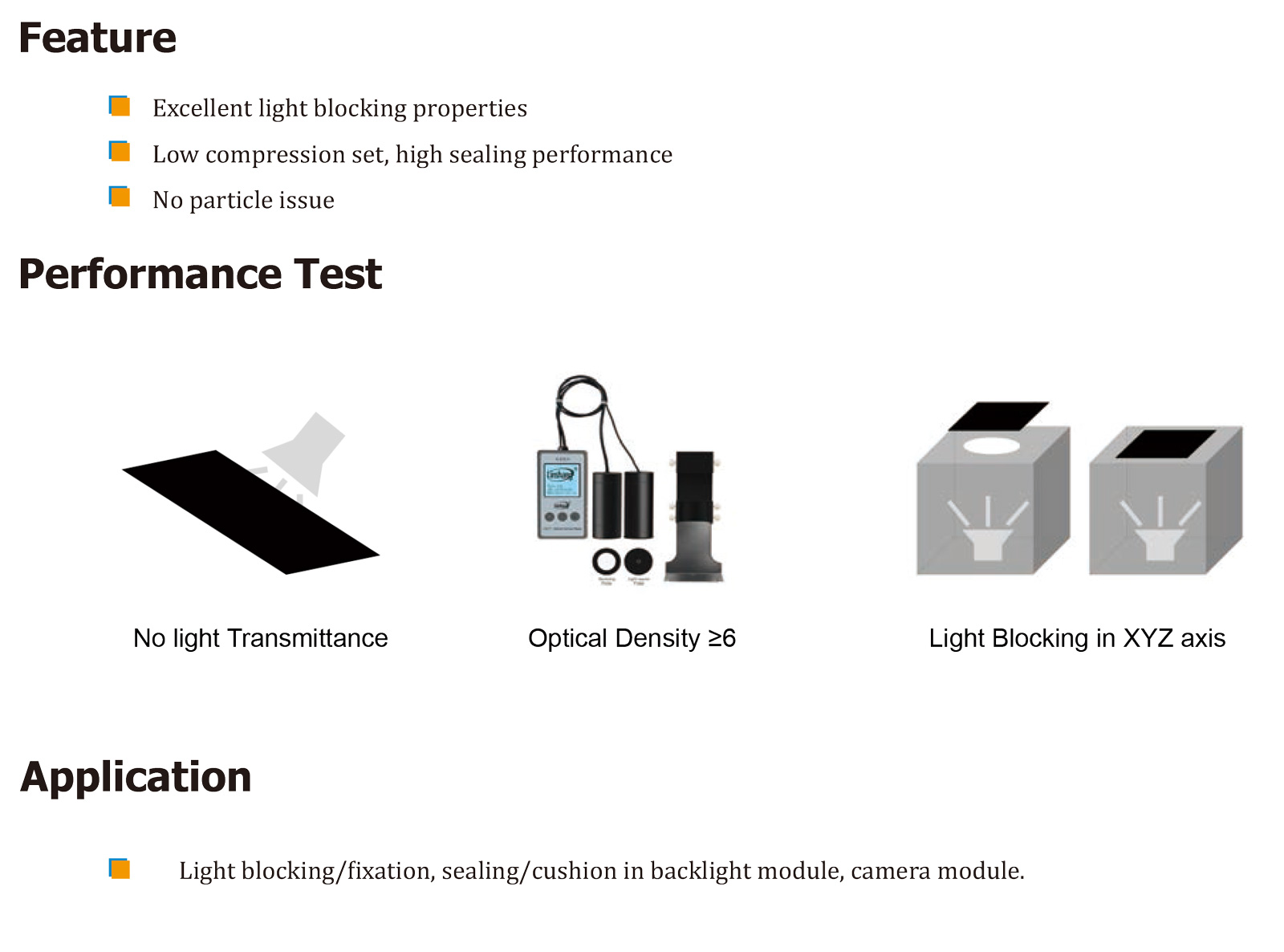 TM PF-S3B系列泡棉是一種中等柔軟、快速回彈的泡棉,帶有黑色PET基底,用于電子設(shè)備應(yīng)用中的遮光、緩沖、保護性密封和長期間隙填充。PF-S3B系列泡棉具有極低的壓縮永久變形率、高密封性能和優(yōu)異的沖擊吸收性能。" />